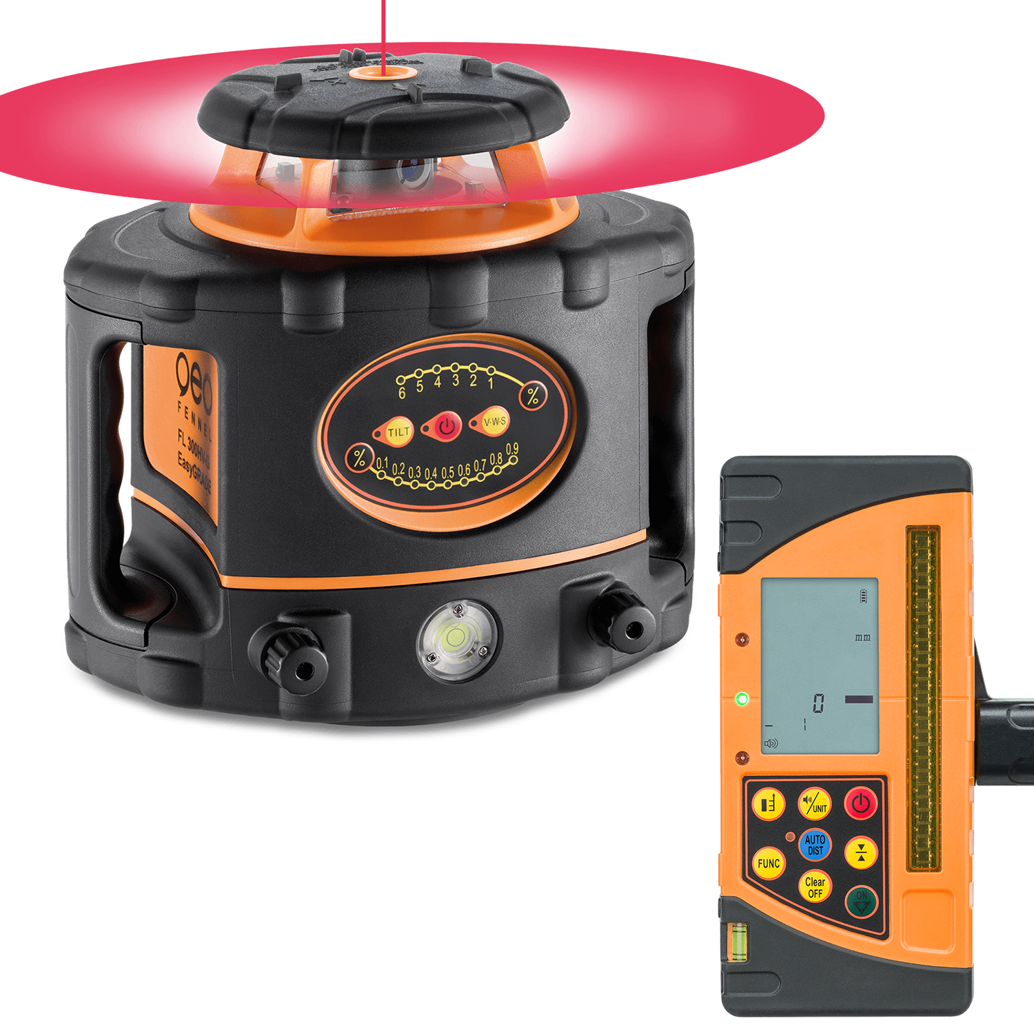 Geo-Fennel FL 300HV-G EasyGRADE automata önbeálló forgólézer + FR-DIST 30 vevőegység
