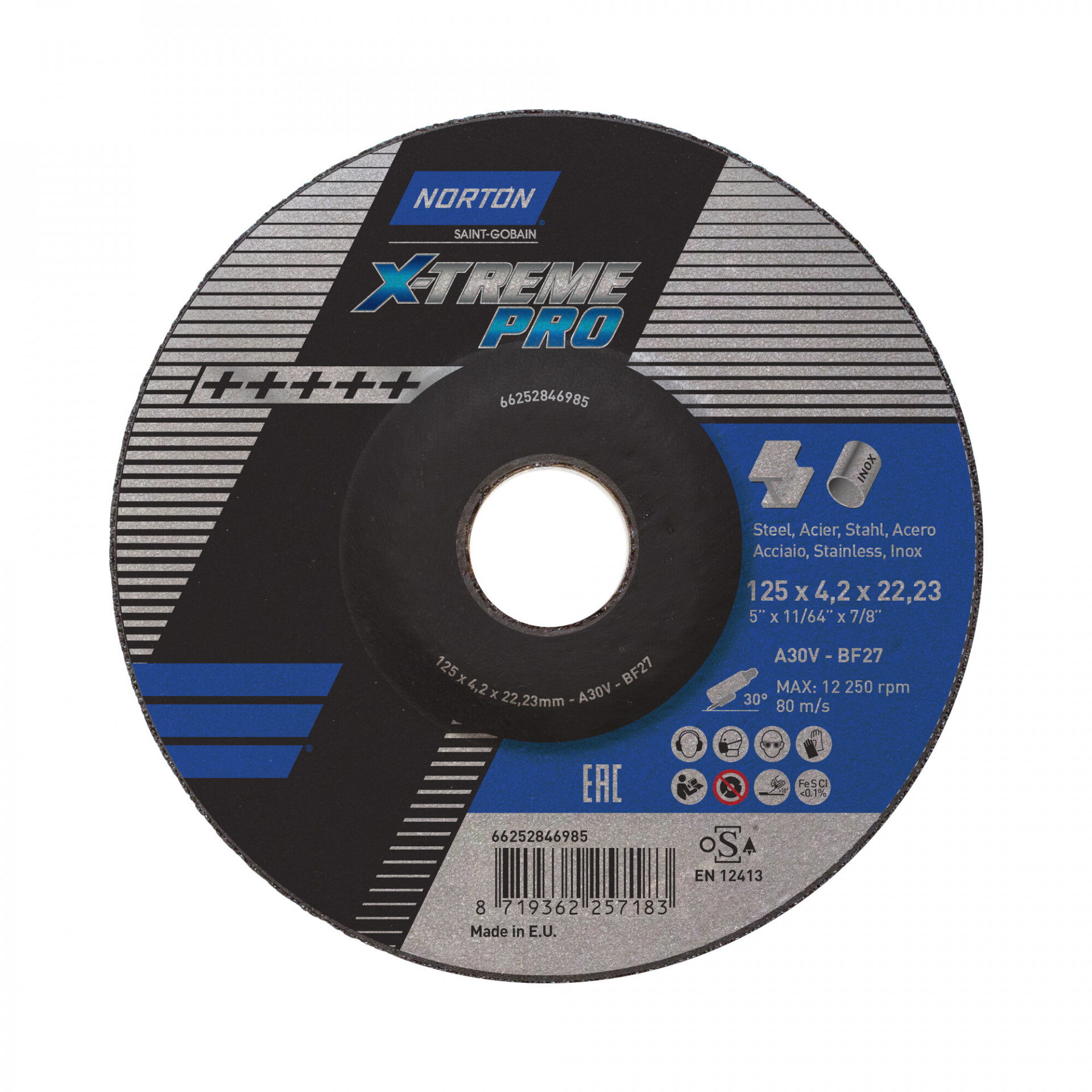 Norton X-Treme Pro fém-inox tisztítókorong 125x4,2x22,23mm, 10 db/csomag