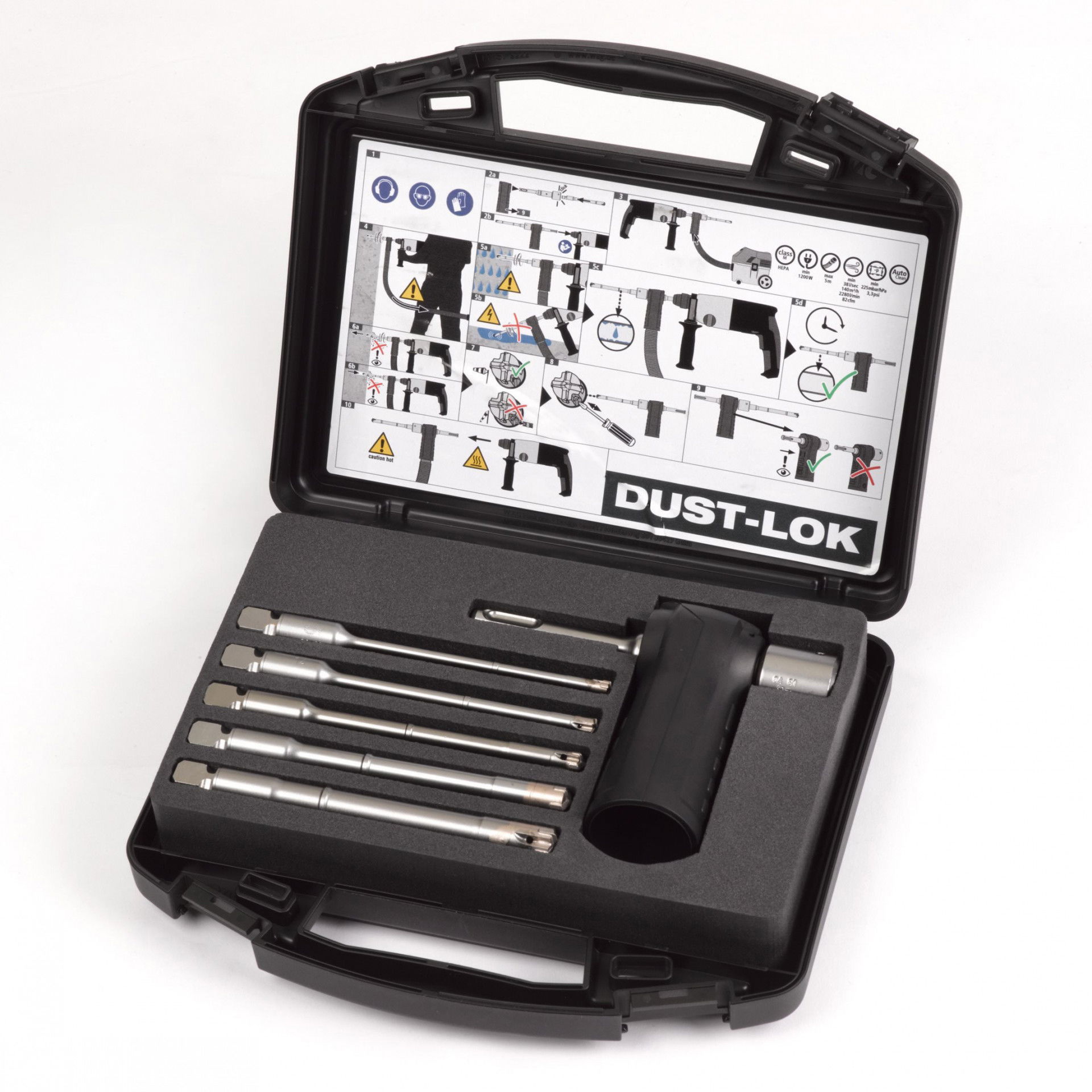 - A készlet tartalma: Ø 5 / 6 / 8 / 10 / 12 x 136 mm / 1 x csatlakozó porszívóhoz